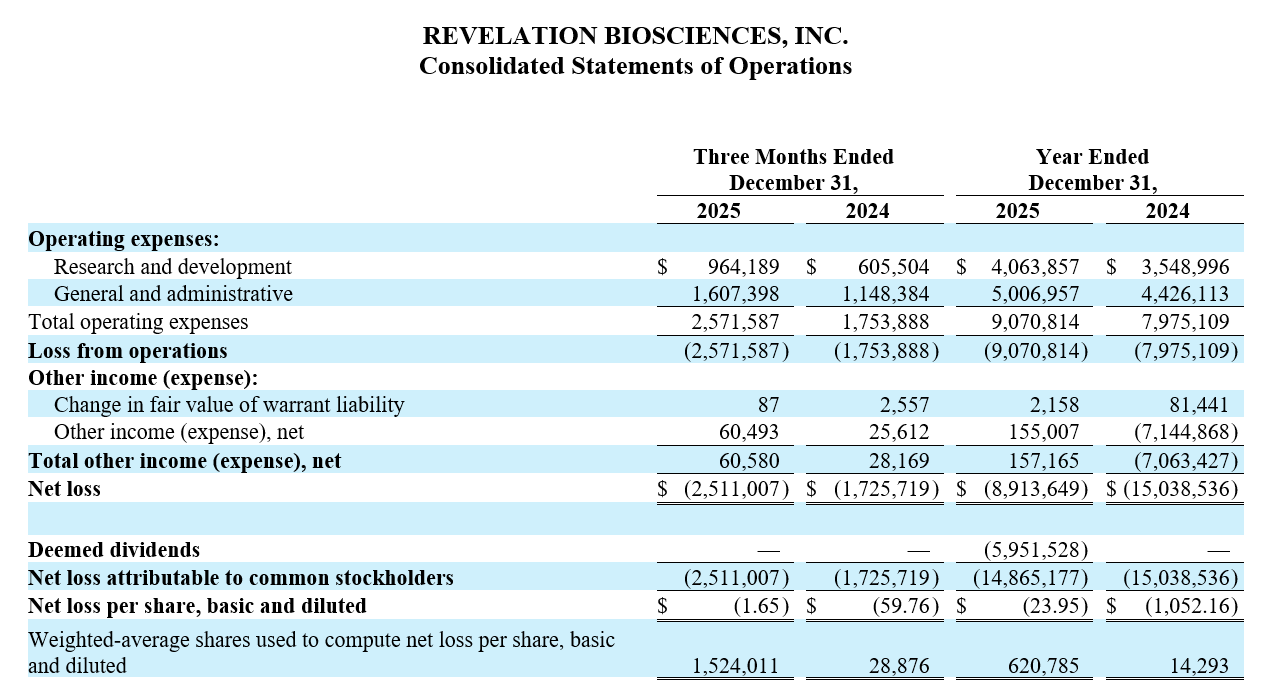 Revelation Biosciences, Inc. Announces Financial Results For the Three and Twelve Months Ended December 31, 2025
